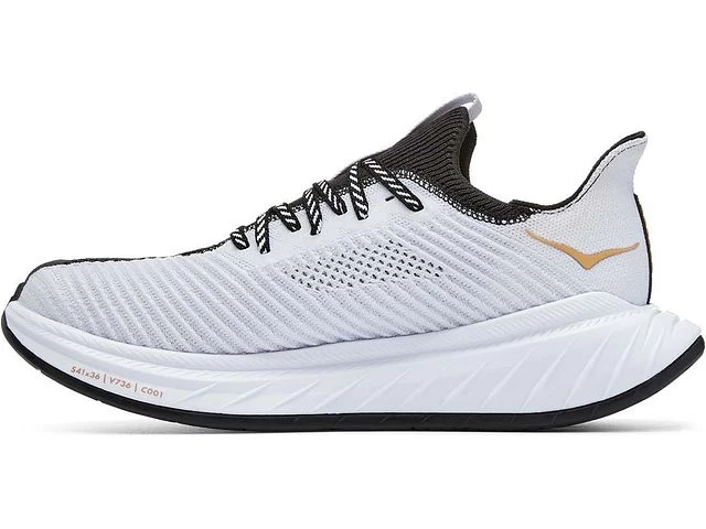 The upper is brand new in the Carbon X 3. HOKA gave it a premium engineered-knit upper that is designed for lightweight and breathable performance. It has a bootie-like construction with an extended heel tab designed for an easy pull-on. Plus, its bold, asymmetrical colors will make a statement on your run.