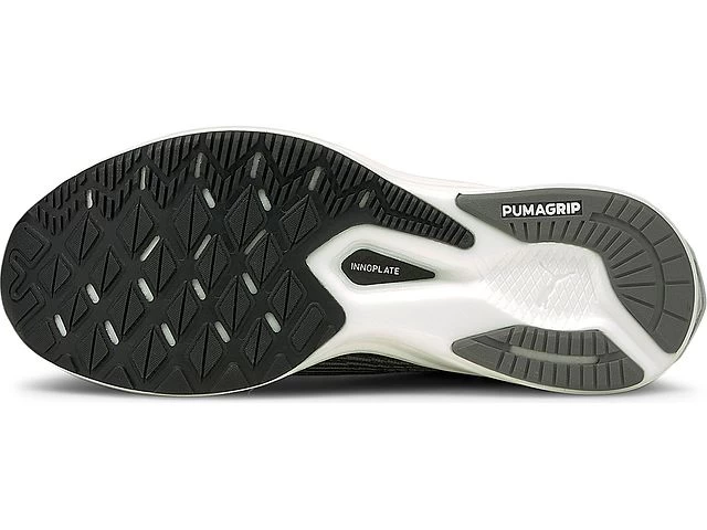 Right out of the gate, you’ll enjoy the extremely fun and fast ride that Puma’s carbon-fiber INNOPLATE gives this running shoe. The propulsive plate, paired with lightweight and responsive NITRO foam in the midsole, makes you feel like you’re running on air.