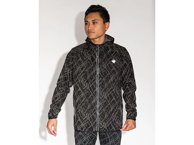 This running jacket sports 360 degrees of reflective print to help you be seen by drivers for those early morning or late night runs, and it’s engineered with the highest standard for environmentally friendly water- and wind-resistant finishes to keep you protected from the elements. A scuba style hood keeps your head warm.